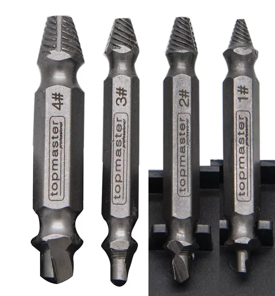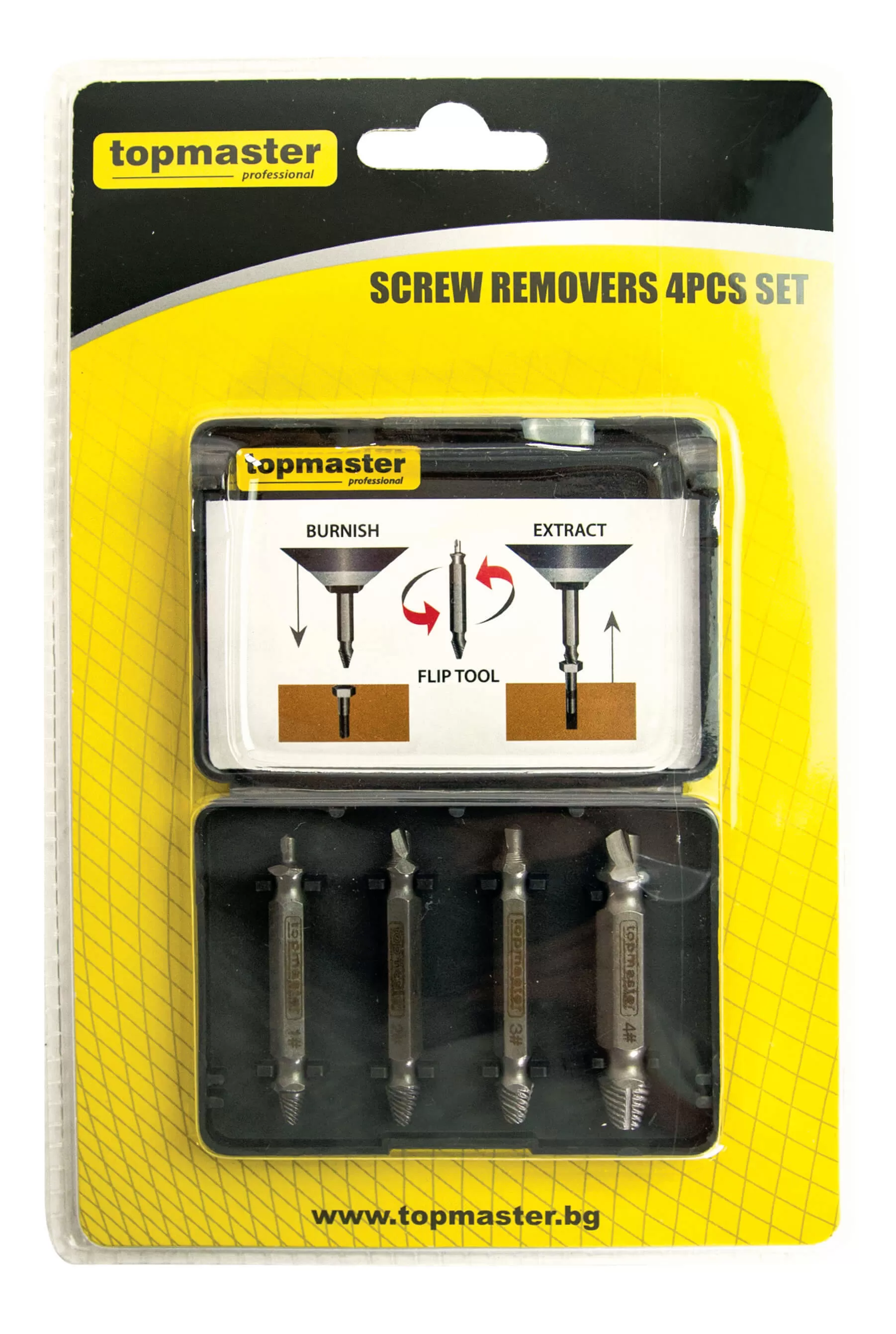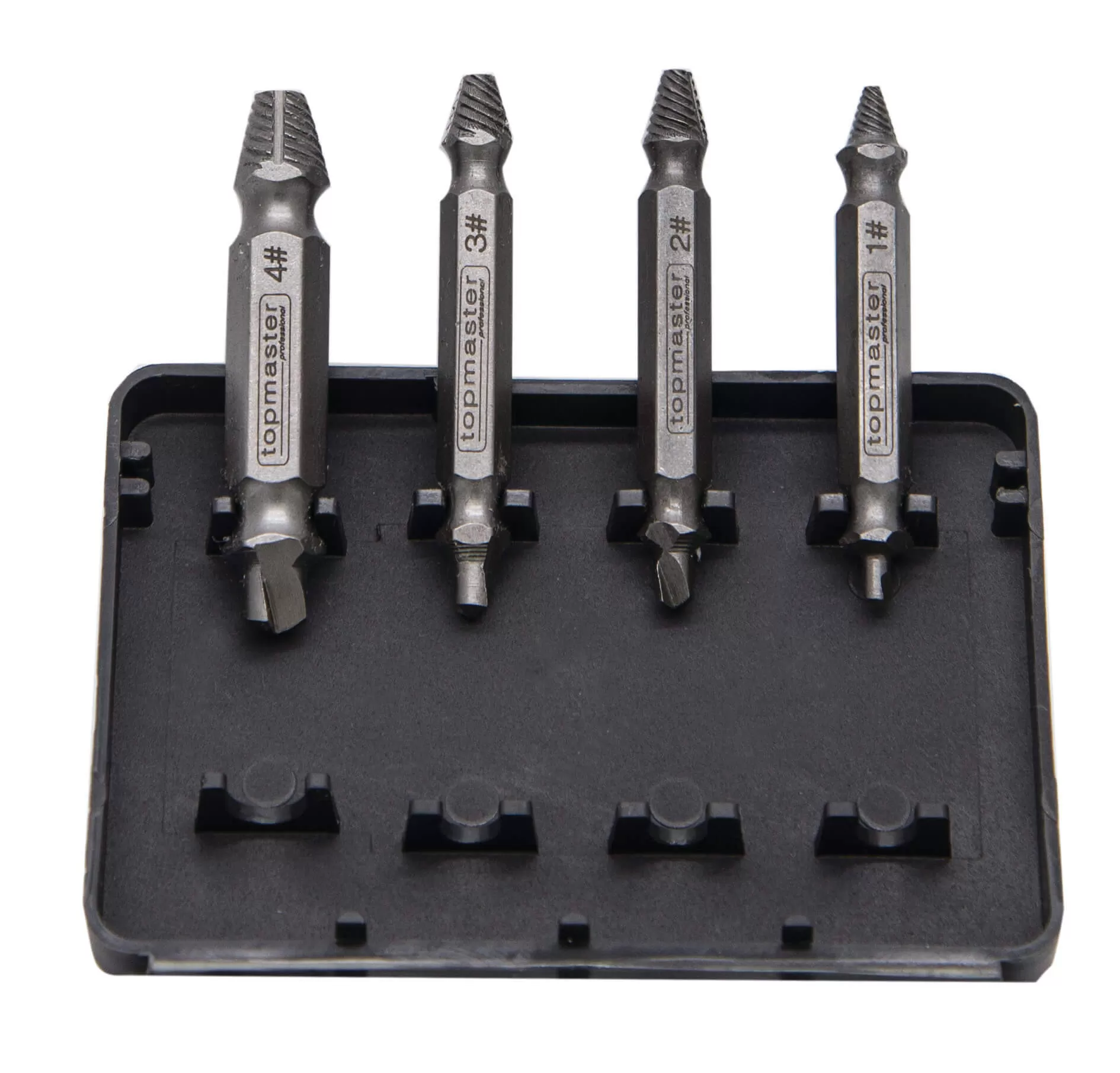 Made of high-quality chrome-molybdenum steel for long-lasting durability. The set includes 4 extractors designed for removing damaged screws and bolts with right-hand threads. Features polished shanks and comes in a convenient storage case.