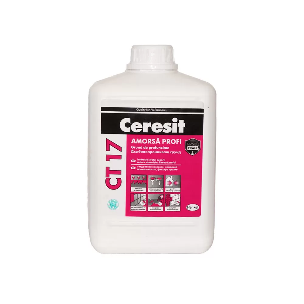 Ceresit CT 17 is a professional-grade, solvent-free primer designed for the treatment of porous and absorbent surfaces before applying adhesives, screeds, plasters, or paints. It penetrates deeply, strengthens the substrate, and improves adhesion and drying uniformity of subsequent layers.