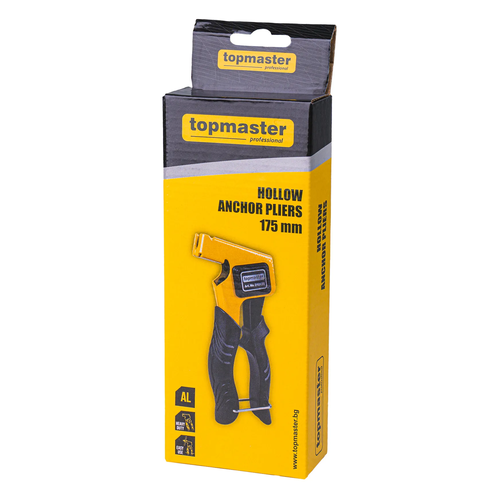 Topmaster Professional setting pliers are designed for fast and secure installation of metal anchors in drywall and hollow walls. They provide strong and reliable fastening where conventional wall plugs cannot be used.
