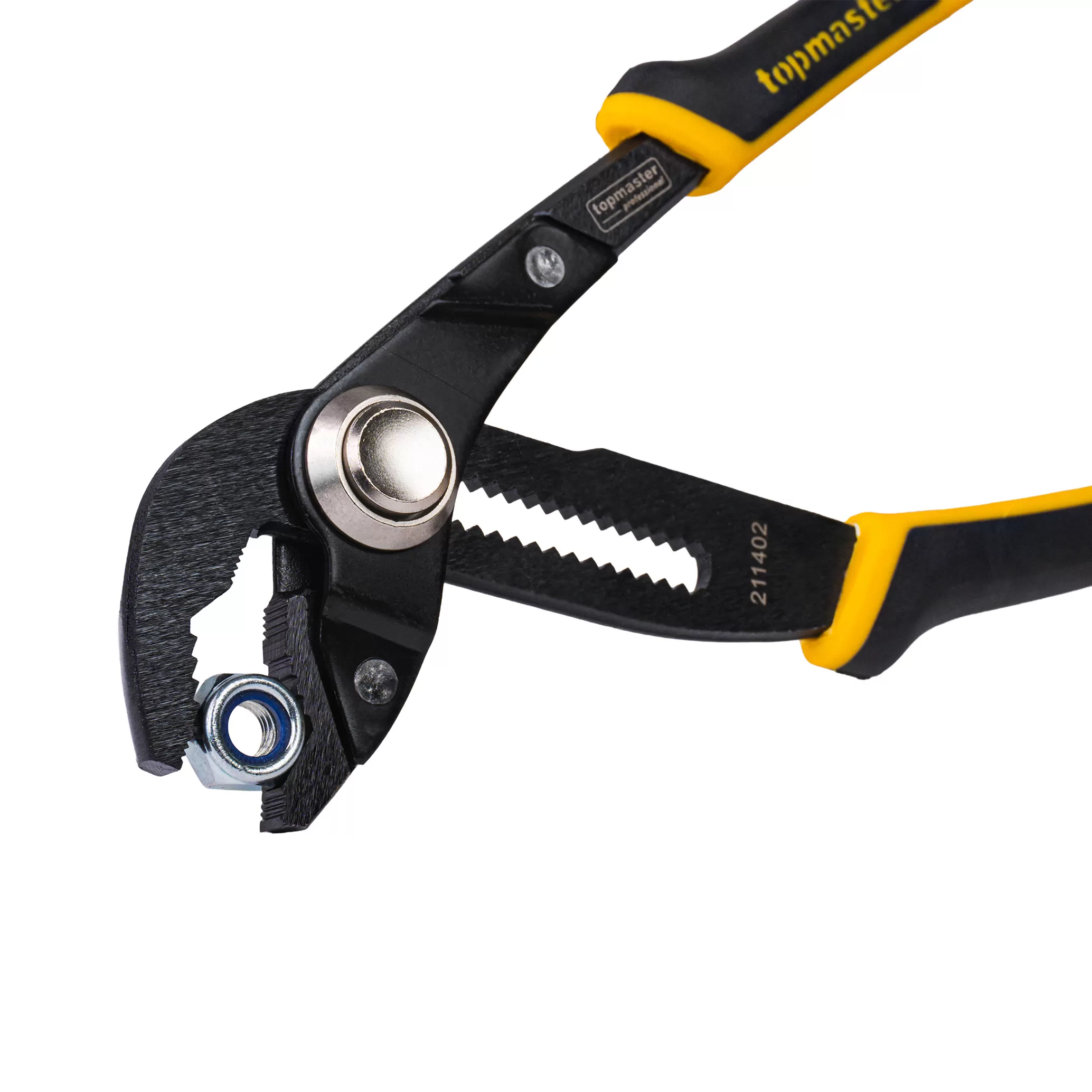 Topmaster Professional 300 mm water pump pliers are built for demanding professional use. Made from premium chrome vanadium steel (Cr-V), they ensure strength, durability, and smooth operation. Featuring 17 adjustment positions and a push-button quick adjustment system, they provide a secure, gap-free grip without damaging surfaces.