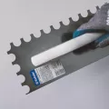 Stainless steel trowel with a semicircular notch, long 3k soft handle, MASTER LINE