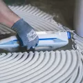 - a trowel for applying self-flowing, thick-layer and deformable adhesive mortars