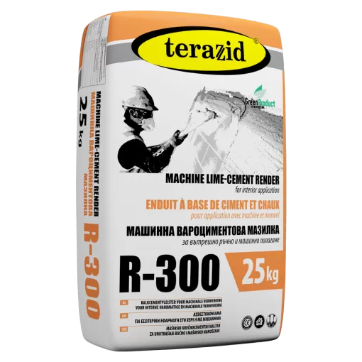 Terazid R300 is a high-quality lime-cement plaster designed for interior finishing works. This ready-to-use dry mix is based on lime, cement, and sand, providing excellent vapor permeability that allows walls to "breathe," promoting a healthy indoor climate.