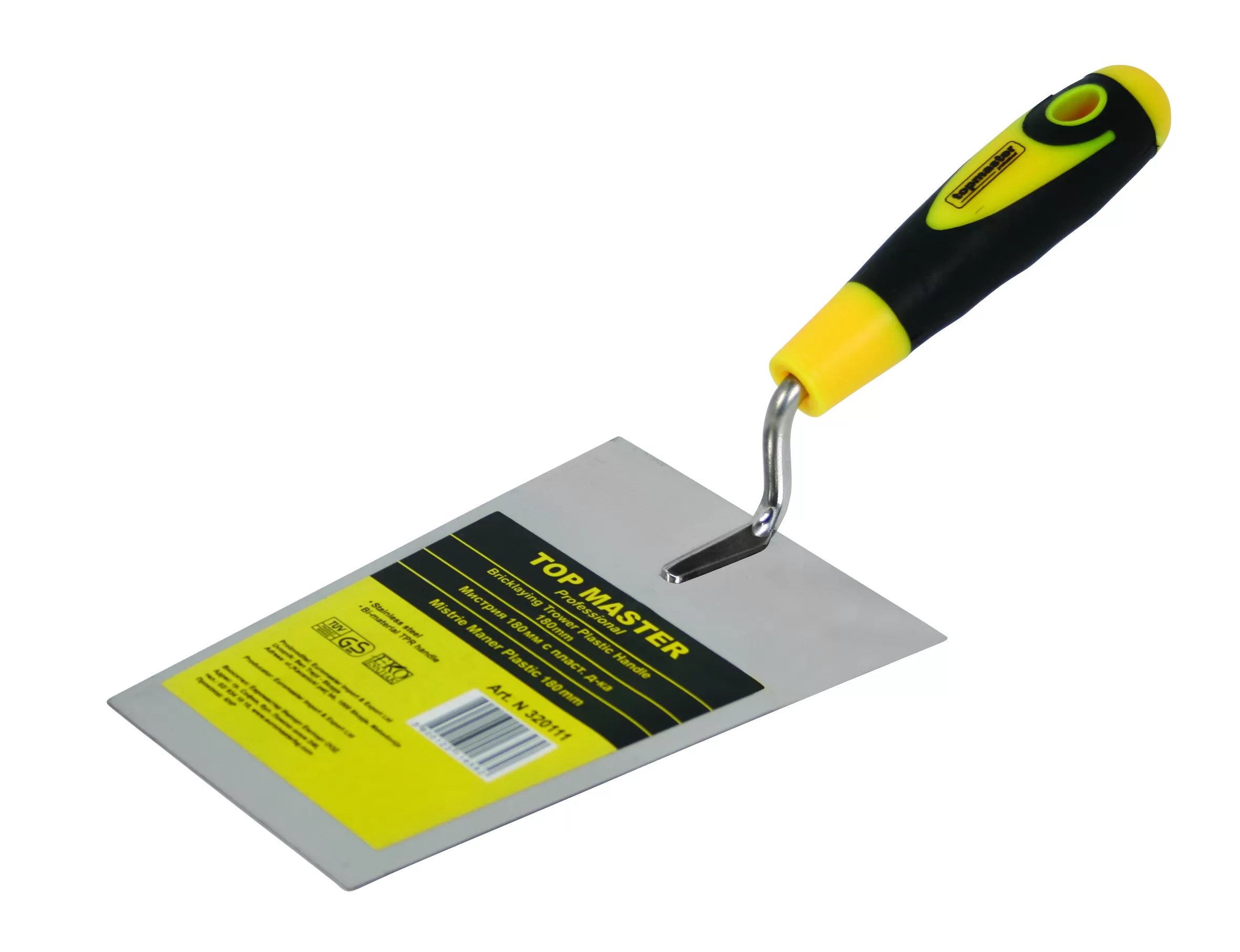 The Topmaster trowel with a plastic handle is a professional tool combining excellent quality and long-lasting durability. Made from stainless steel and equipped with a two-component plastic handle for better grip and comfort during use.