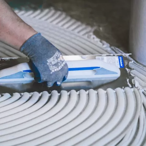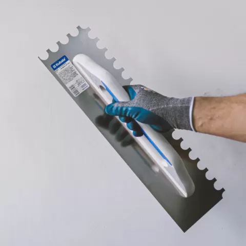 Скоба двойна с дюбел ф16 за пл.тръба -сива