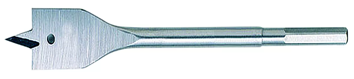 This flat wood drill bit is manufactured by Raider Power Tools under strict factory standards. It is suitable for drilling in soft and hard wood as well as light construction materials like drywall. The precisely ground tip ensures a clean drilling start, and the improved design allows up to three times faster drilling compared to standard flat bits. The hex 1/4" shank provides secure grip and reliable performance.