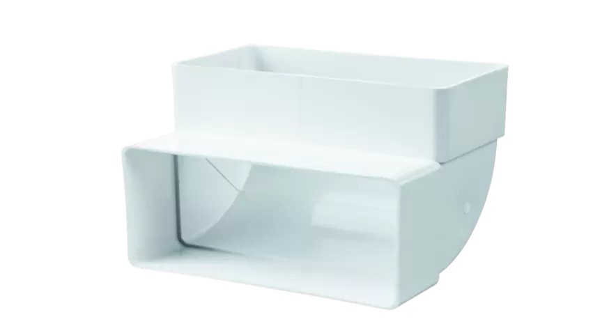 VERTS 8282 е вертикално коляно, предназначено за свързване на два плоски въздуховода с размери 60x204 мм под ъгъл от 90°. Подходящо за монтаж в жилищни и търговски вентилационни системи. Изработено от здрава бяла PVC пластмаса, устойчива на влага и корозия.
