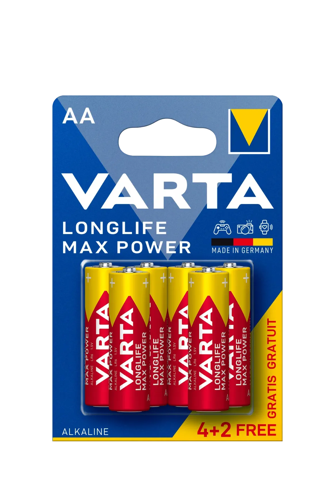 Varta Longlife Max Power AA LR6 са усилени алкални батерии, създадени за високотехнологични устройства.