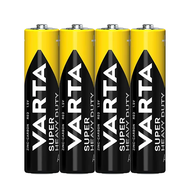 Varta Super Heavy Duty AAA са усилени цинкови батерии с ниска консумация на енергия, предназначени за малки устройства.