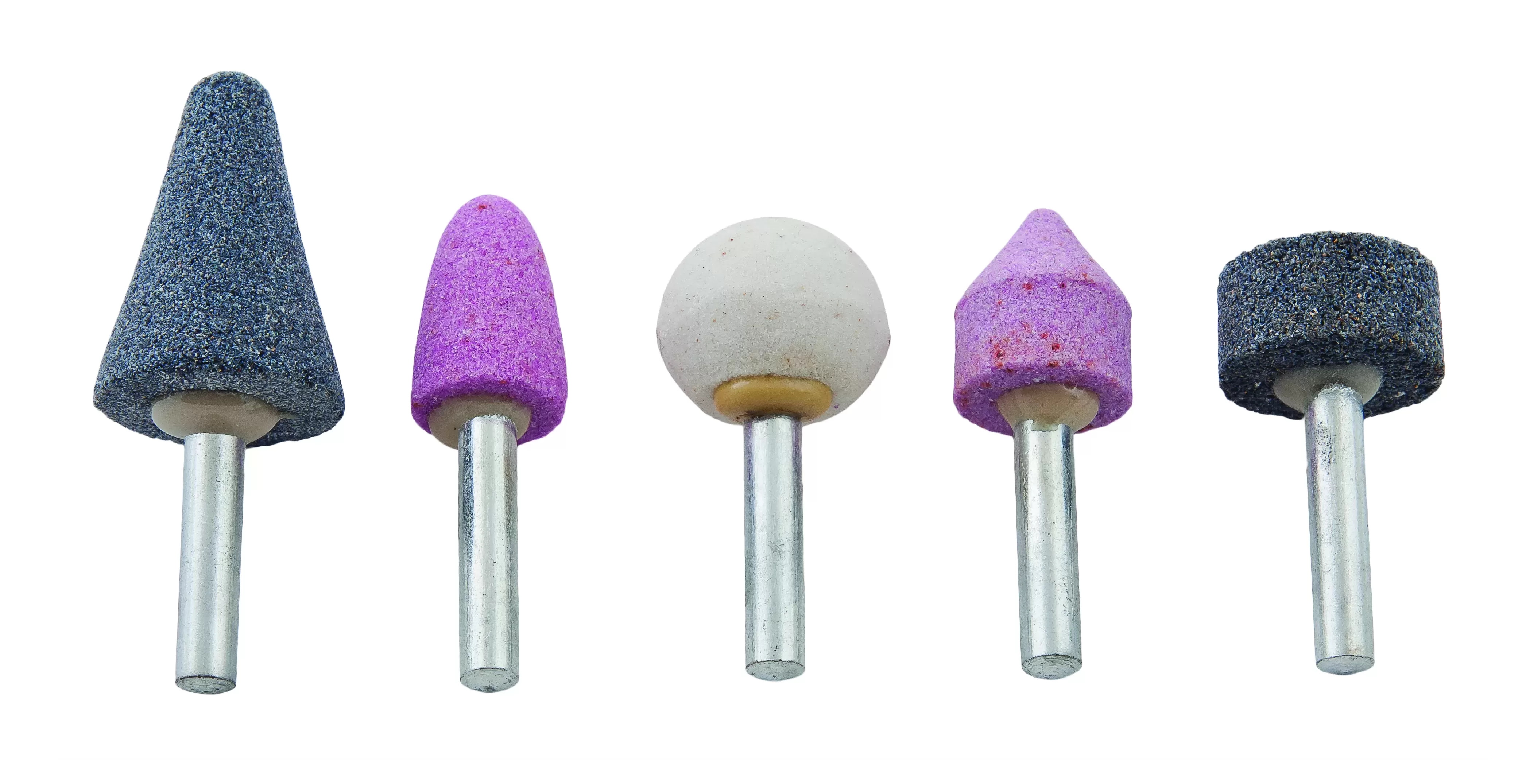 Комплект от 5 абразивни борчета с Ø6 mm опашка, предназначени за шлайфане, почистване и обработка на метал. Подходящи за използване с електрически и пневматични инструменти с диаметър на захвата 6 mm.