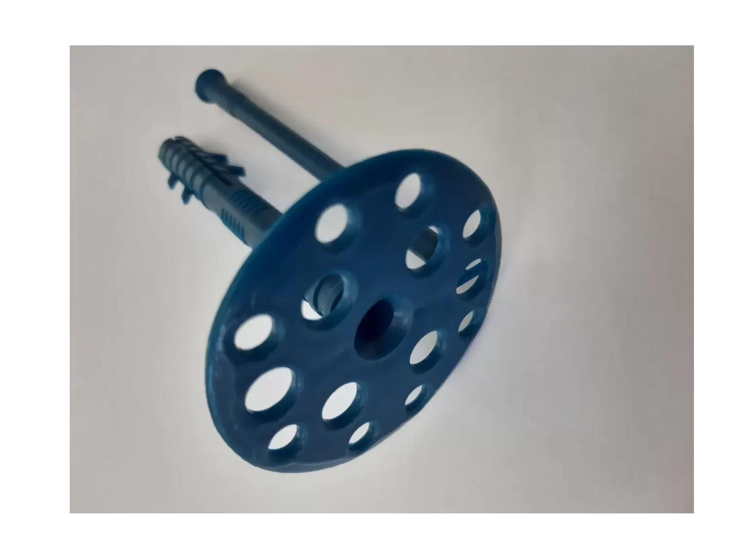 Дюбел за закрепване на топлоизолация, изработен от удароустойчив висококачествен полипропилен. Предназначен за механично закрепване на топлоизолационни материали като експандиран полистирол, минерална вата и слоести плочи върху бетонни основи (бетон, камък, тухла) и други материали.