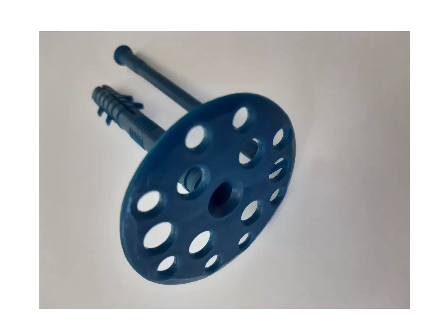 Дюбел за закрепване на топлоизолация, изработен от удароустойчив висококачествен полипропилен. Предназначен за механично закрепване на топлоизолационни материали като експандиран полистирол, минерална вата и слоести плочи върху бетонни основи (бетон, камък, тухла) и други материали.