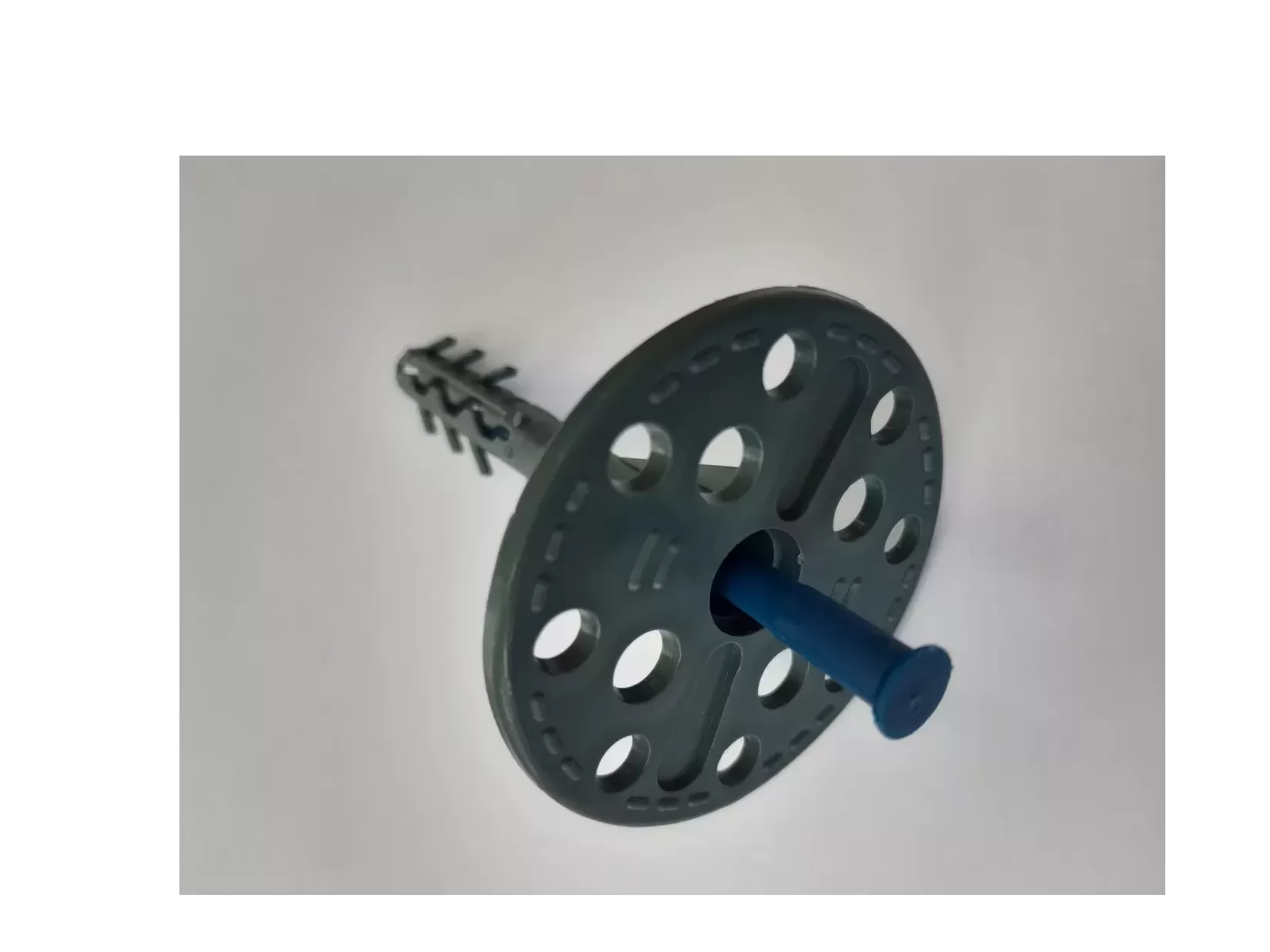 Дюбел за закрепване на топлоизолация, изработен от удароустойчив висококачествен полипропилен премиум клас. Предназначен за механично закрепване на топлоизолационни материали като експандиран полистирол, минерална вата и слоести плочи върху бетонни основи (бетон, камък, тухла) и други материали.