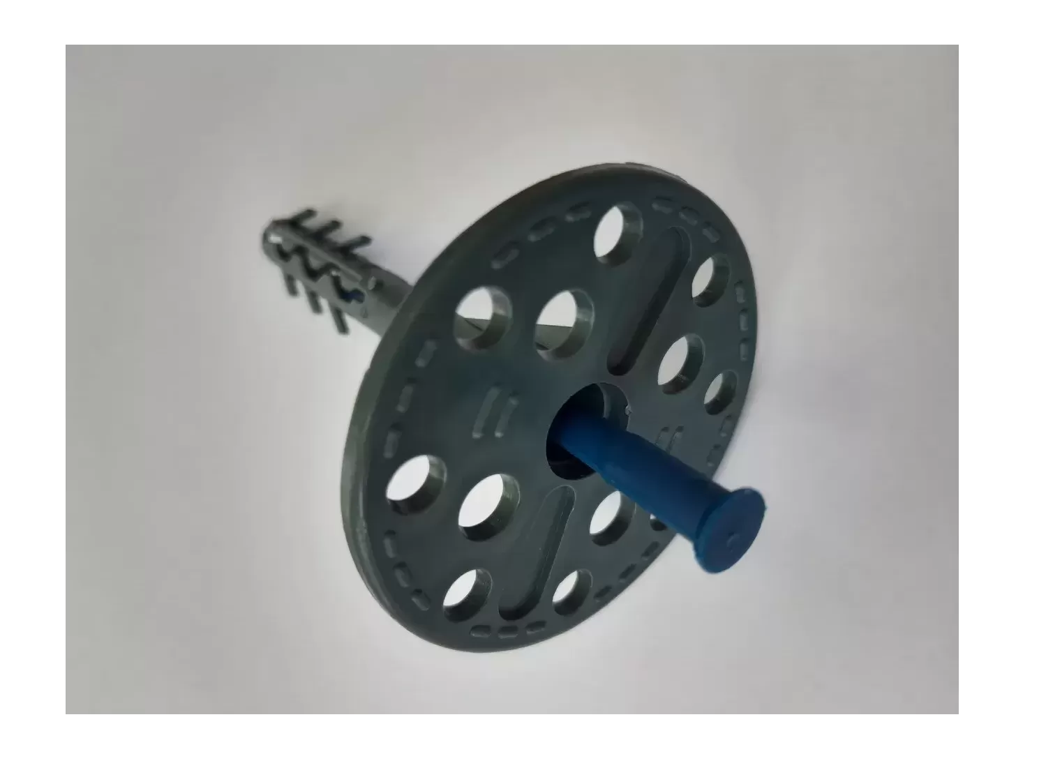 Дюбел за закрепване на топлоизолация, изработен от удароустойчив висококачествен полипропилен премиум клас. Предназначен за механично закрепване на топлоизолационни материали като експандиран полистирол, минерална вата и слоести плочи върху бетонни основи (бетон, камък, тухла) и други материали.