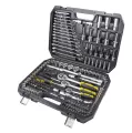 Изработен от висококачествена хром-ванадиева стомана 50BV30 с антикорозионно покритие за дълъг експлоатационен живот. Комплектът включва 216 части, съчетаващи разнообразни ключове, вложки и аксесоари, подходящи за професионална употреба.
