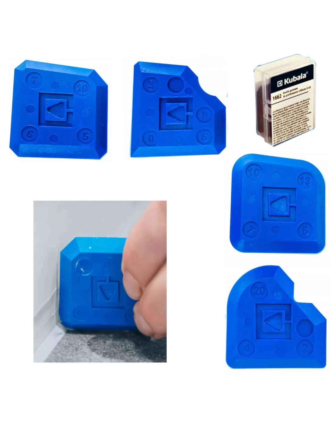 • Тип на инструмента: Комплект гумени шпатули (кубчета) за фугиране и оформяне на уплътнители.