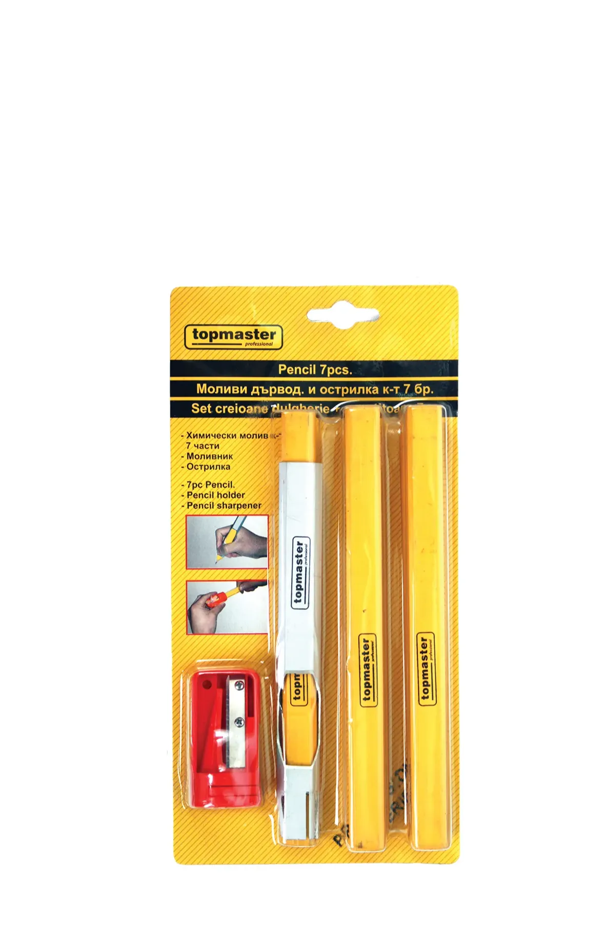 Моливи дърводелски и острилка комплект 7 бр. Topmaster Professional