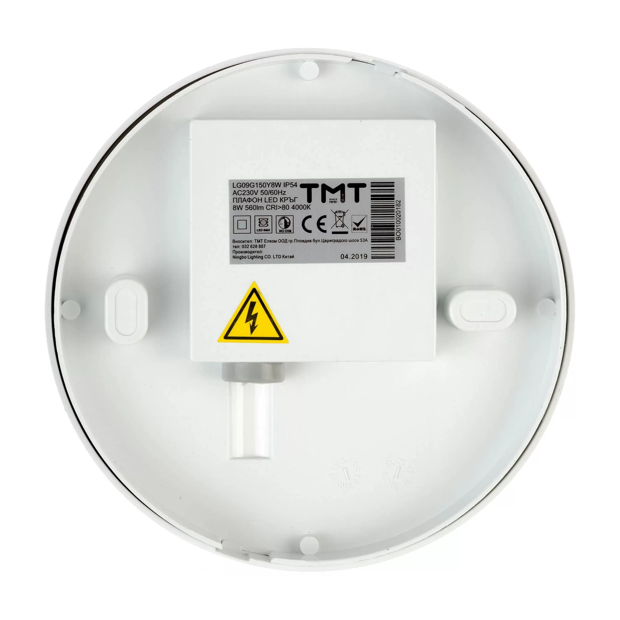 Плафониера LED 8W, 4000K, 560Lm, IP54, ТМТ, кръгла, 230V