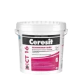 Ceresit CT 16 — специальная грунтовочная краска, применяемая перед нанесением декоративной штукатурки в системах теплоизоляции (ETICS). Она улучшает адгезию между слоями, снижает впитываемость основания и облегчает равномерное нанесение финишного покрытия.