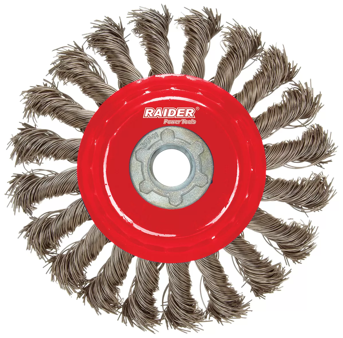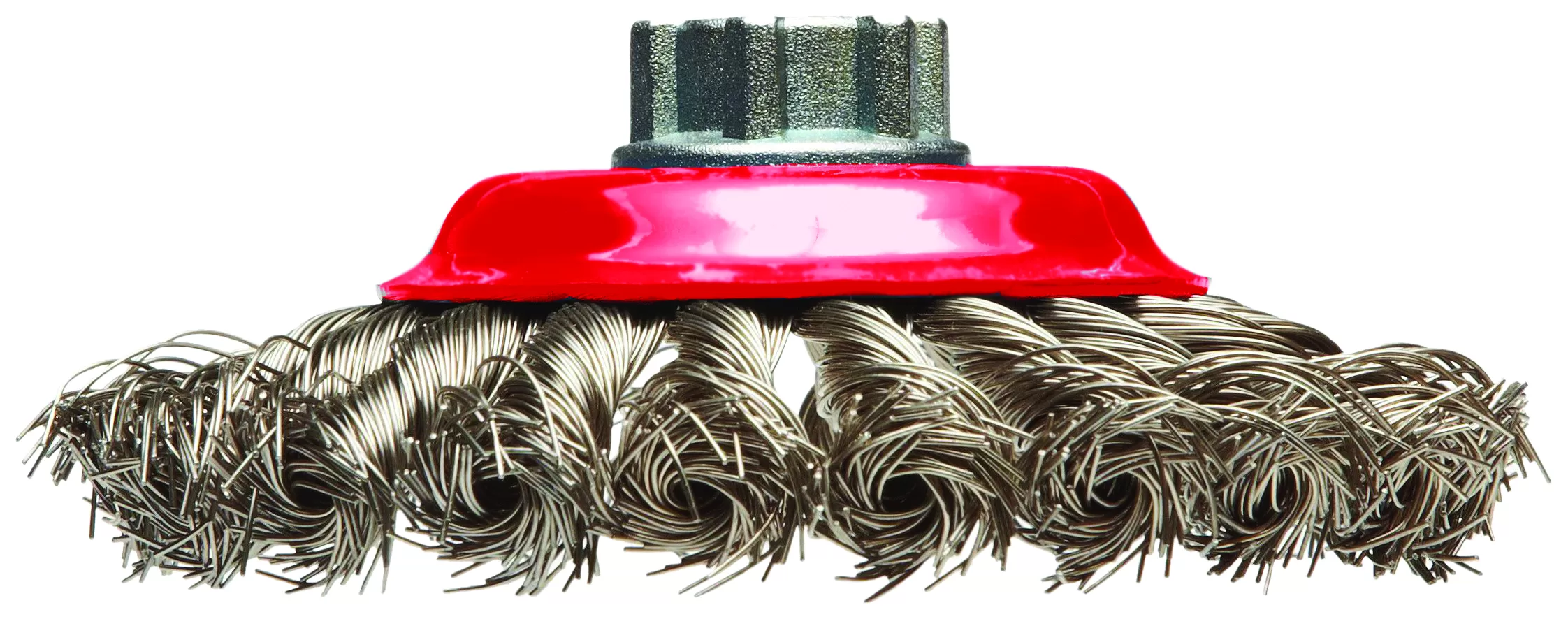 Плетёная конусная щетка предназначена для всех типов углошлифовальных машин. Изготовлена из высококачественной волнистой плетёной углеродистой стали, что обеспечивает долговечность и высокую эффективность работы.