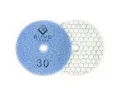 Подходит для керамогранита, мрамора, кафеля и других керамических изделий. Рабочая поверхность с текстурой «пчелиные соты» обеспечивает равномерное сцепление и качественную обработку. Диаметр Ø100 мм. Используется с углошлифовальной машиной на низких оборотах (около 2–3 тыс. об/мин) и крепится с помощью держателя/велкро.