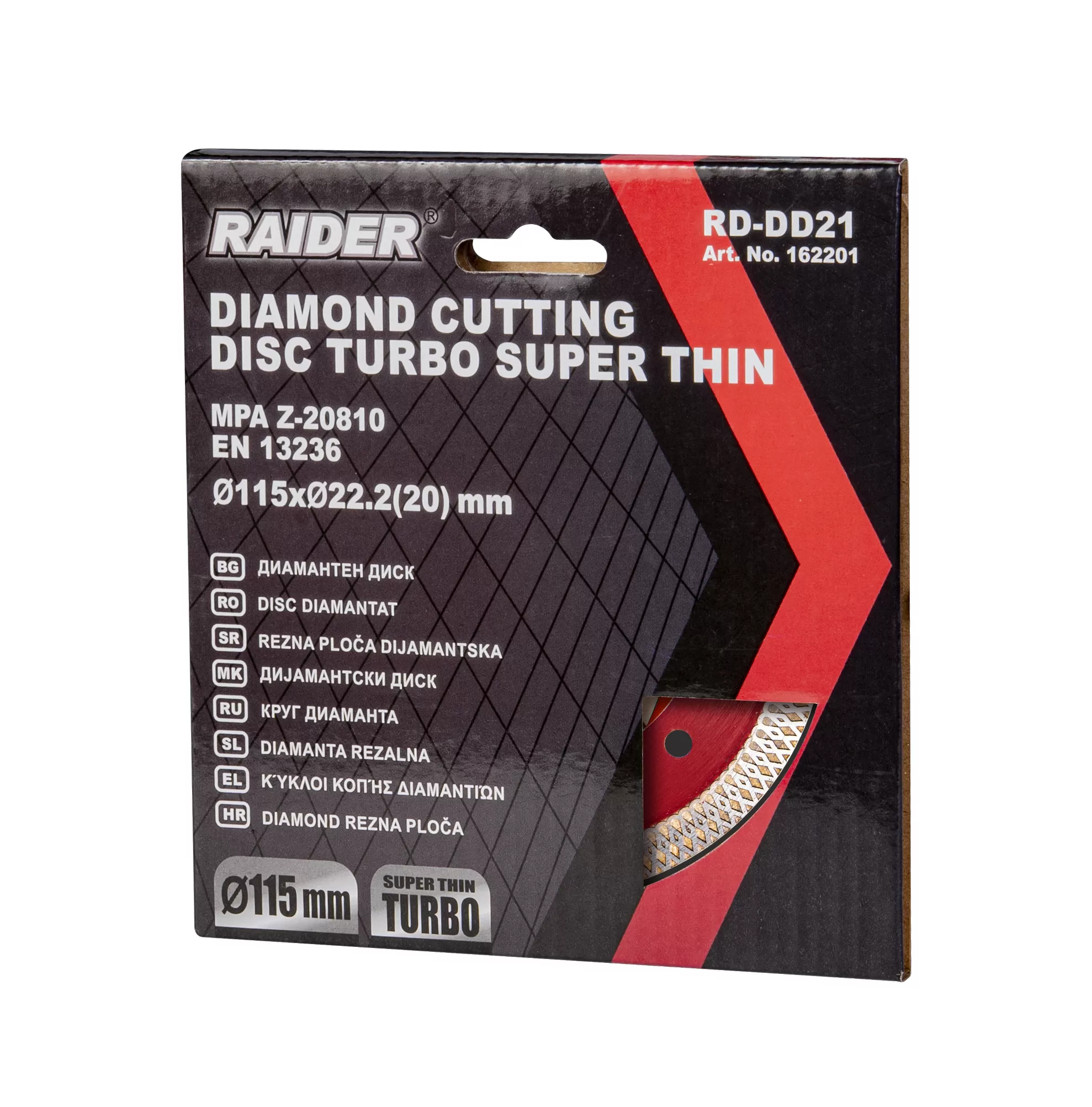 Алмазный тонкий TURBO диск 115x22.2 мм – Raider RD-DD21