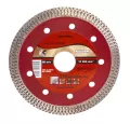 Тонкий алмазный диск с TURBO-профилем предназначен для чистой и точной резки твёрдых материалов: керамогранита, фарфора, мрамора, кафеля и керамической плитки.