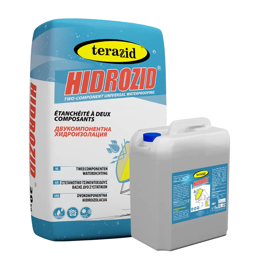 Hidrozid — это двухкомпонентная цементная гидроизоляционная смесь для защиты горизонтальных и вертикальных поверхностей. Формирует эластичное, бесшовное и водонепроницаемое покрытие с отличной адгезией к бетону, стяжке и другим минеральным основаниям. Подходит для внутренних и наружных работ под плиткой. Не предназначена для поверхностей, подверженных прямому УФ-излучению.