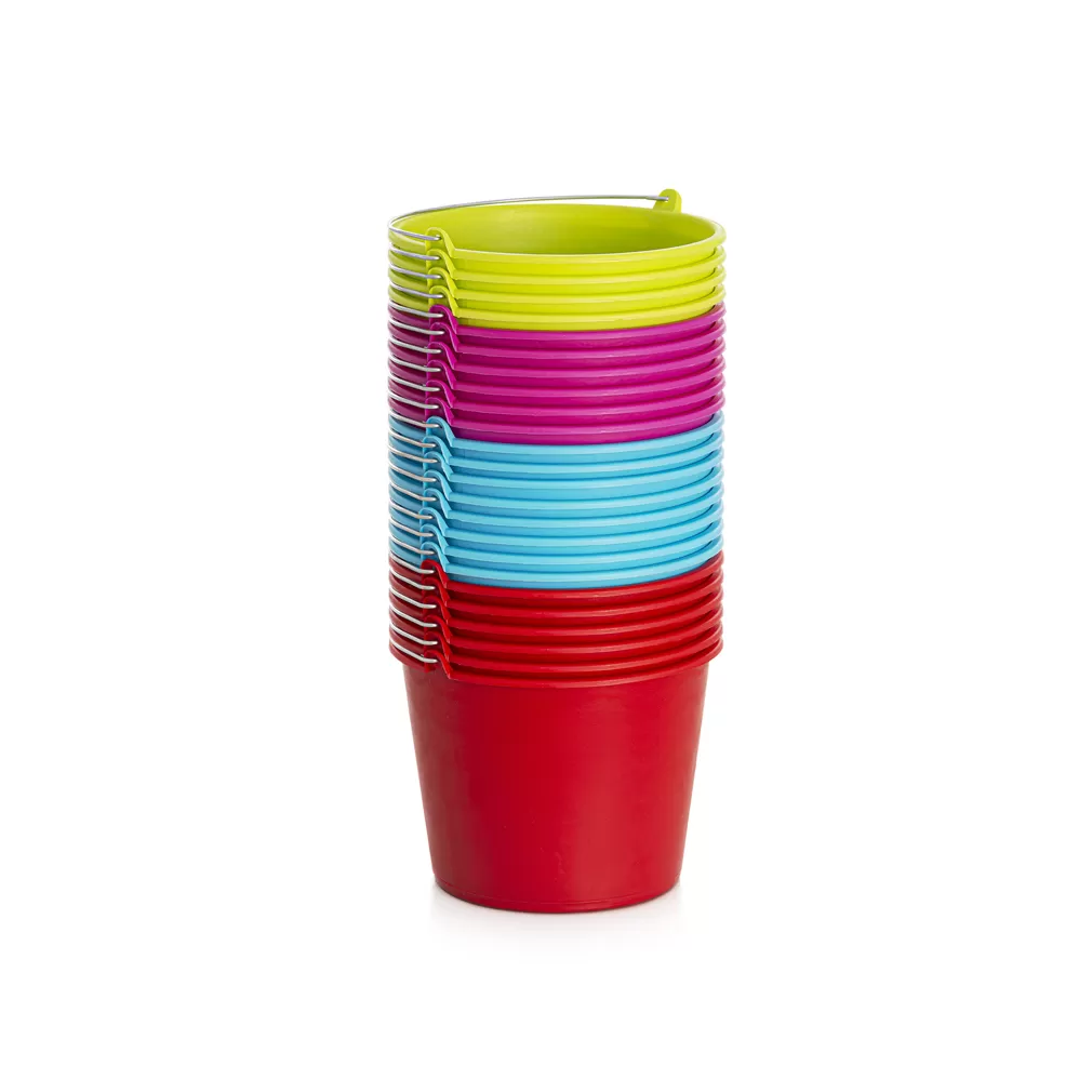 Гибкое универсальное ведро с металлической ручкой. Легкое и очень ударопрочное, идеально для домашнего и профессионального использования.