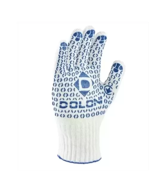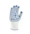 Перчатки выполнены из смеси 70% хлопка и 30% полиэстера для оптимального комфорта и прочности. Ладонь покрыта ПВХ рисунком для улучшенного сцепления с различными материалами. Без полного покрытия (без облива), что обеспечивает хорошую вентиляцию рук. Подходят для общепроизводственных работ.