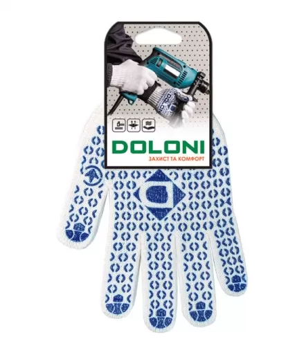 Трикотажные рабочие белые перчатки Долони Универсал, 10 класс, с ПВХ рисунком, размер 10 (XL), модель 520