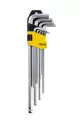 Профессиональный набор длинных шестигранников, специально разработанных для работы под углом до 25°, что особенно удобно в труднодоступных местах. Инструменты изготовлены из прочной хром-ванадиевой стали (Cr-V) с финишной полировкой для повышенной стойкости к коррозии и износу.