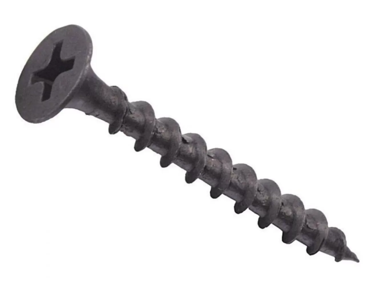 A self-tapping drywall screw designed for securely fastening plasterboard to wooden structures or other porous materials. Made from hardened steel with a black phosphate anti-corrosion coating. Features a sharp point for easy penetration without pre-drilling and a coarse double thread for fast driving and strong hold. Ideal for professional construction and home improvement projects.